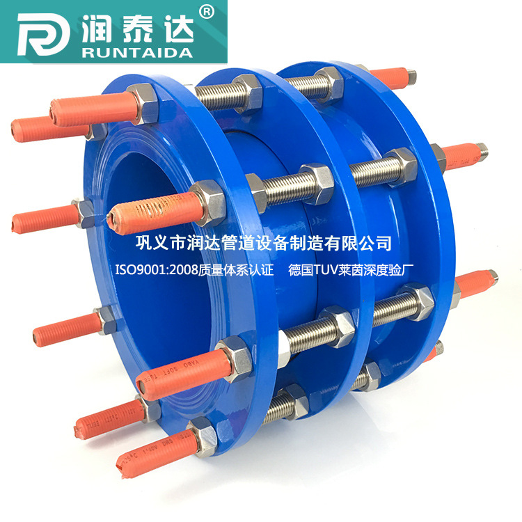 传力接头是泵、阀门,管道等设备与管道连接的新产品,通过全螺栓把它们连接起来,使其成为整体,并有一定的位移量,方便安装。可承受管线的轴向压力。这样就可以在安装维修时,根据现场安装尺寸进行调整,在工作时,不仅提高工作效率,而且对泵、阀们等管道设备起到一定保护作用。